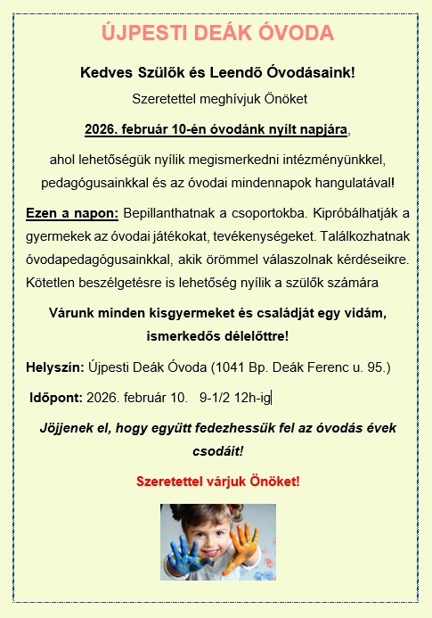 Kedves Szülők és Leendő Óvodásaink! Szeretettel meghívjuk Önöket nyílt napunkra.